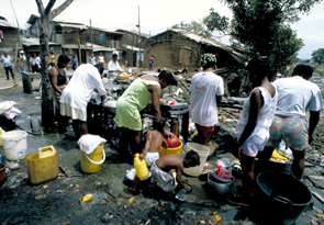 In Haiti, PAHO helped design, finance, monitor, and evaluate a sanitation project to help improve the appearance of some areas in Cité Soleil, the largest neighborhood in Port-au-Prince. The project's broad general goals are to create a health bridge for peace; generate temporary jobs for young people; and help improve unhealthy environmental conditions through a campaign for public sanitation coupled with health education and social mobilization activities.