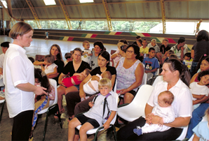 In the Dominican Republic, the Family Health Action Project carried out with the Catholic Medical Mission and with support from the Bristol-Myers Squibb Foundation, aims at strengthening the Catholic Church's health network in communities through local leaders, health workers and families and by reaching pregnant adolescent and adults through parish counselors and helping them during pregnancy, childbirth and infant care until the child turns the 5. The plan for monitoring basic indicators of morbidity, mortality, nutritional surveillance, and micronutrient intake, among others, continues to be pursued.