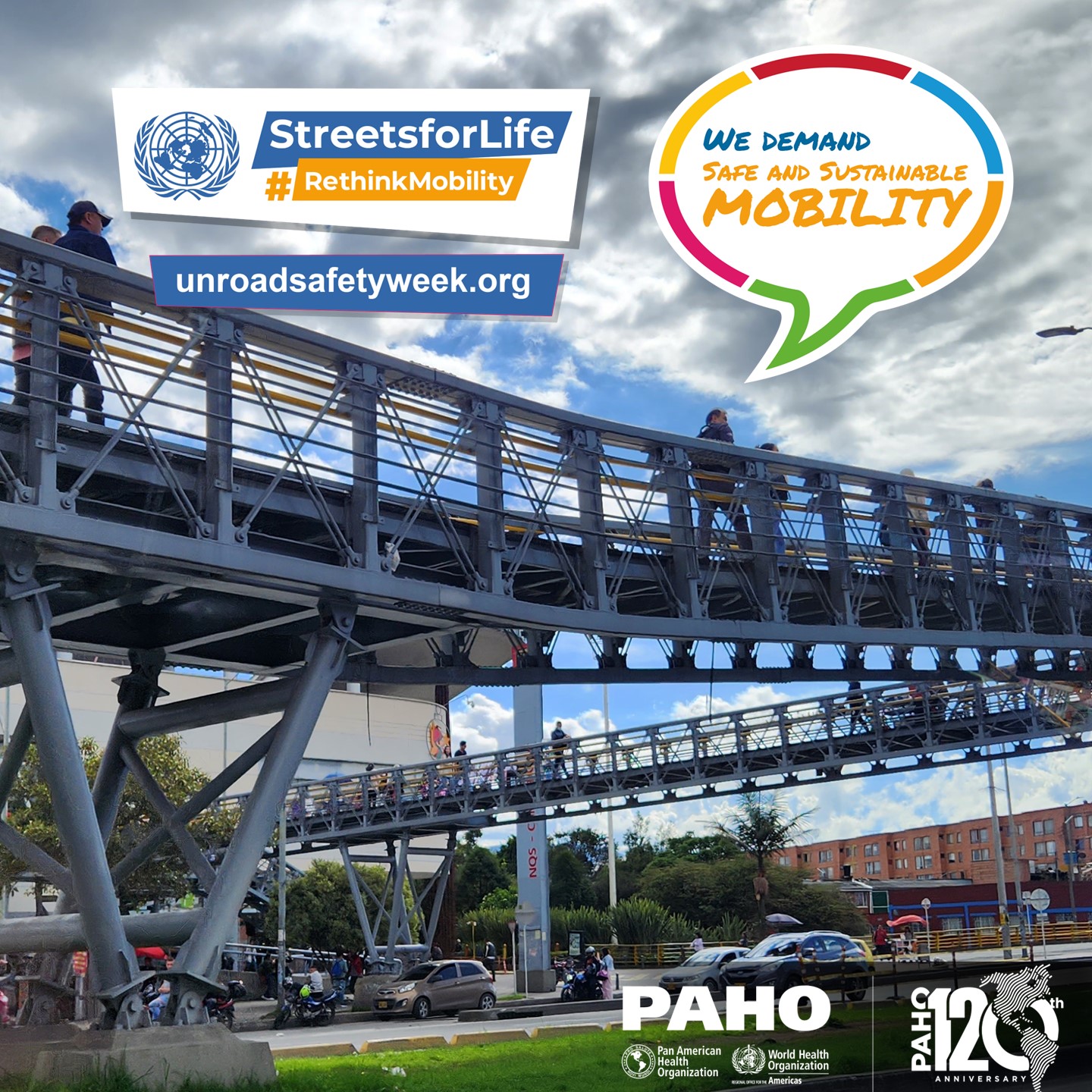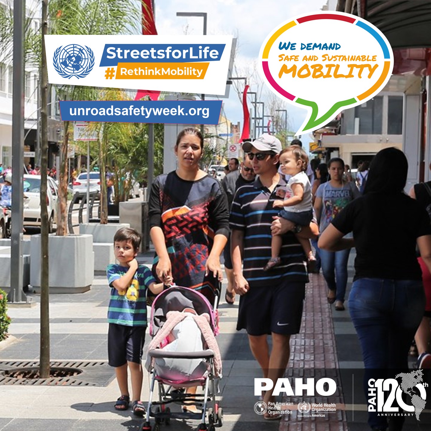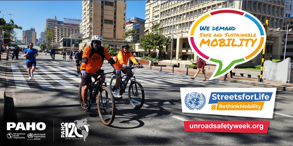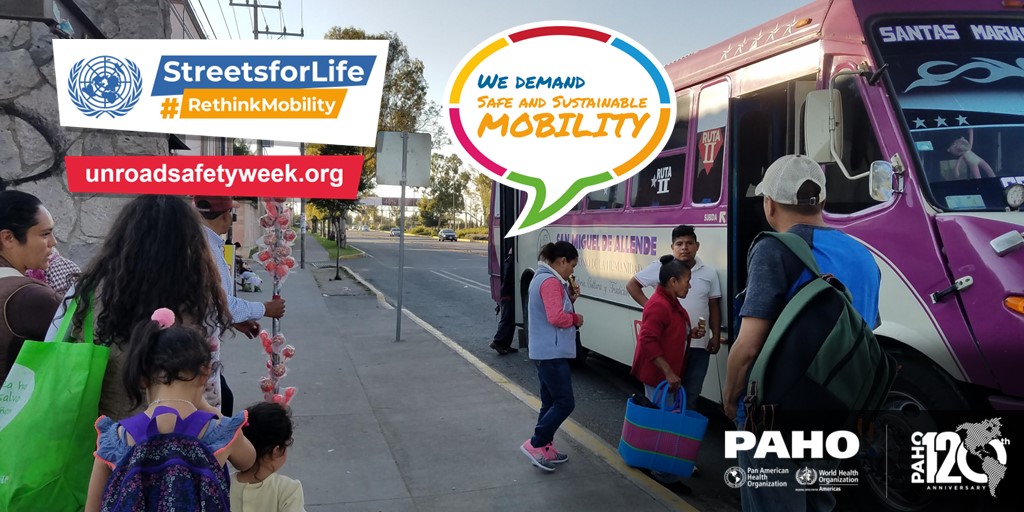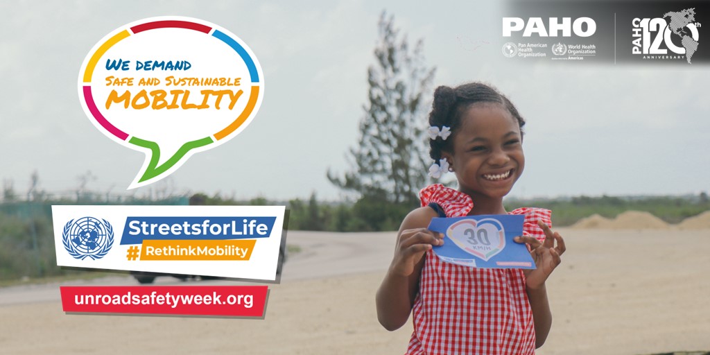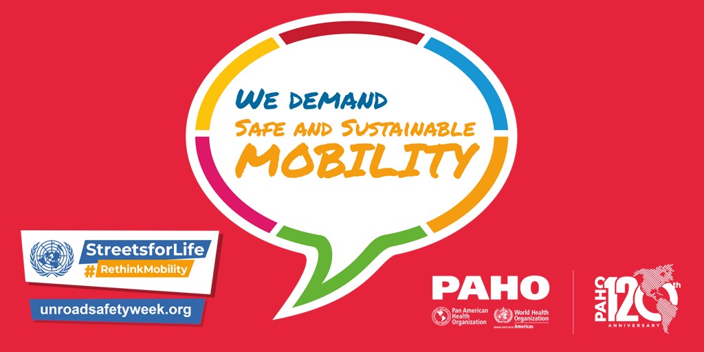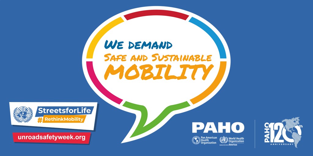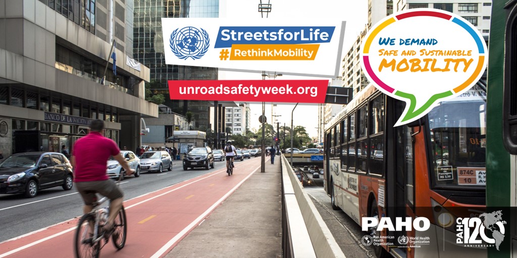 PAHO/WHO invites all road safety and sustainable mobility partners to mark the 7th UN Global Road Safety Week by organizing events and activities and sharing messages and materials on social media with the hashtags: