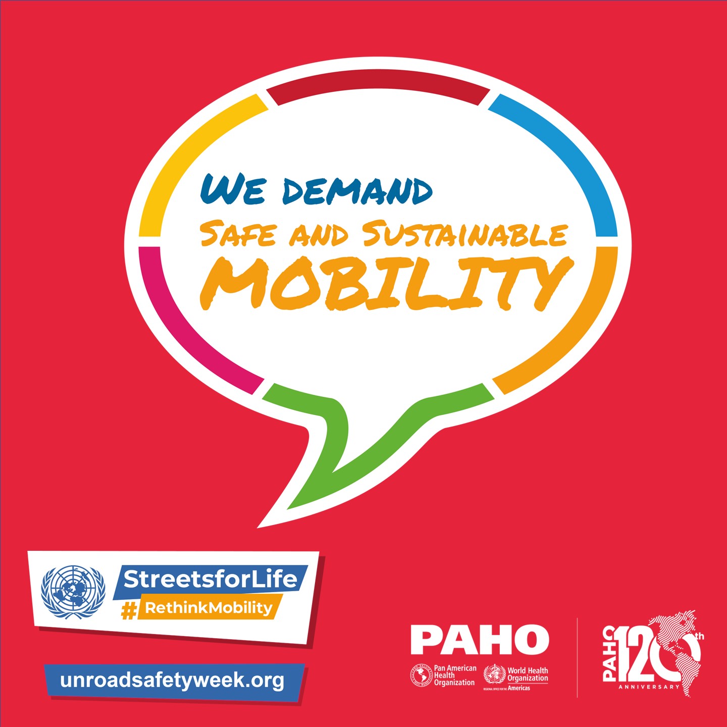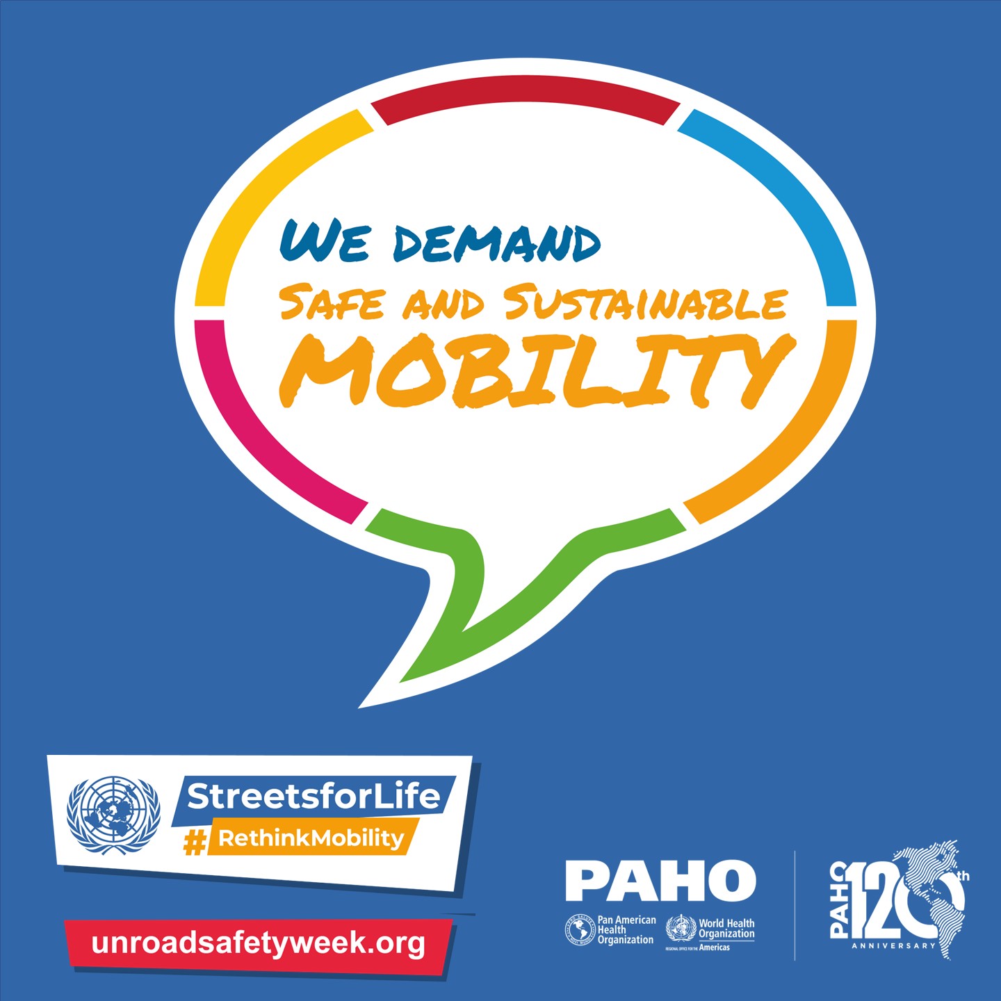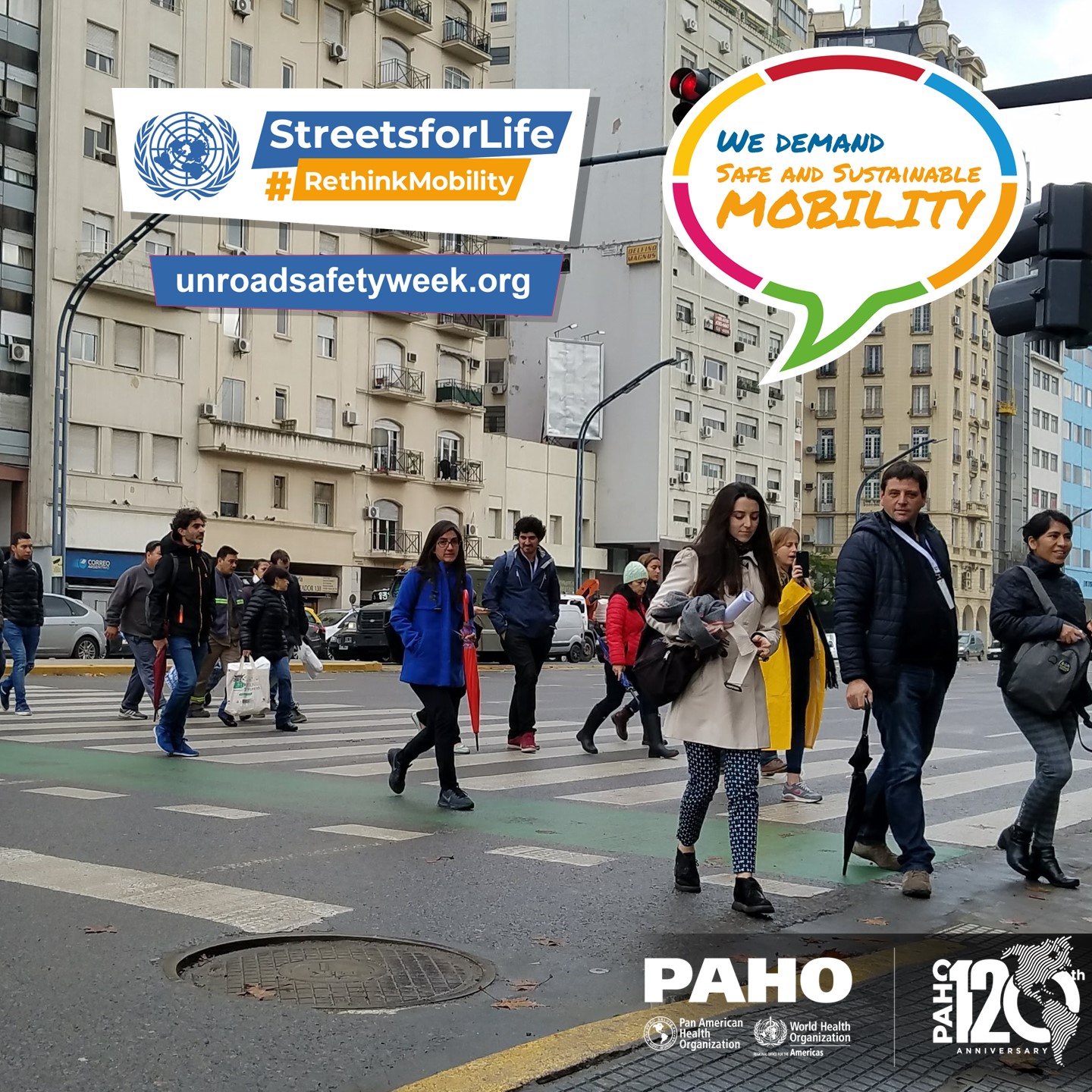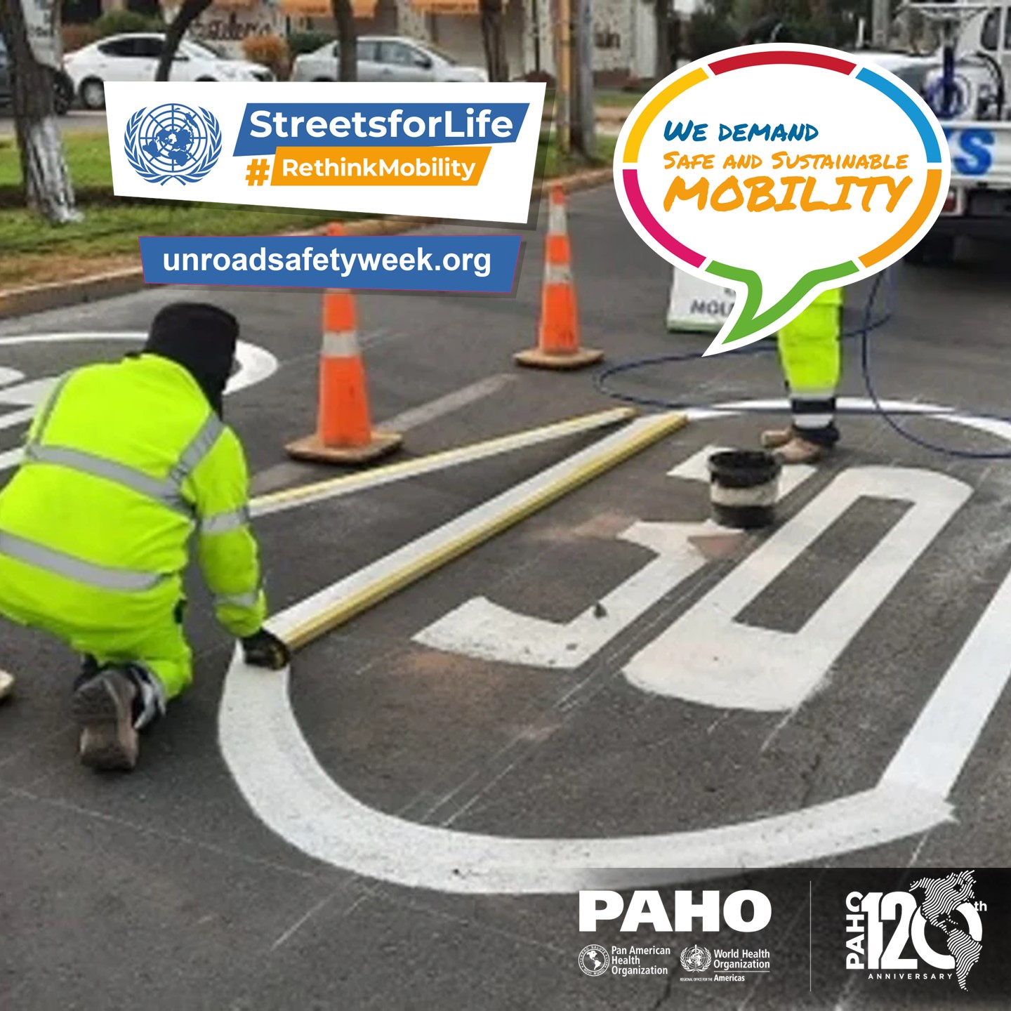 PAHO/WHO invites all road safety and sustainable mobility partners to mark the 7th UN Global Road Safety Week by organizing events and activities and sharing messages and materials on social media with the hashtags: