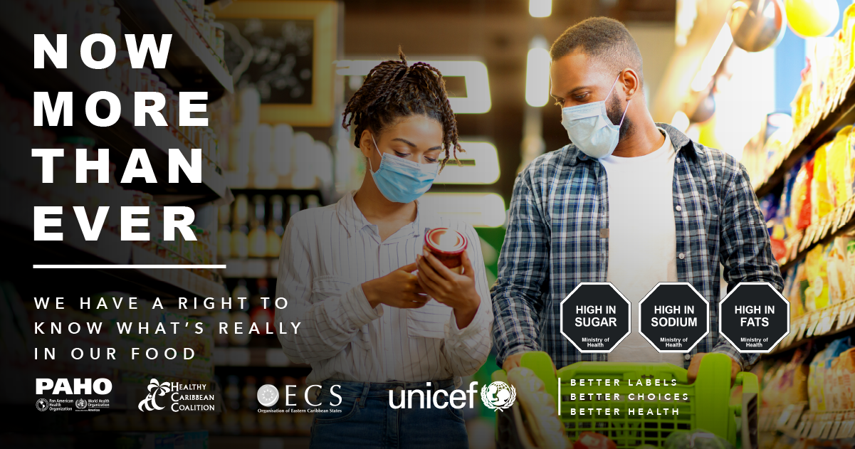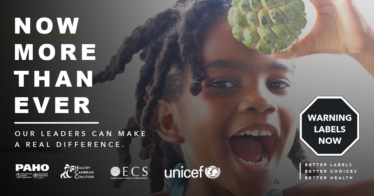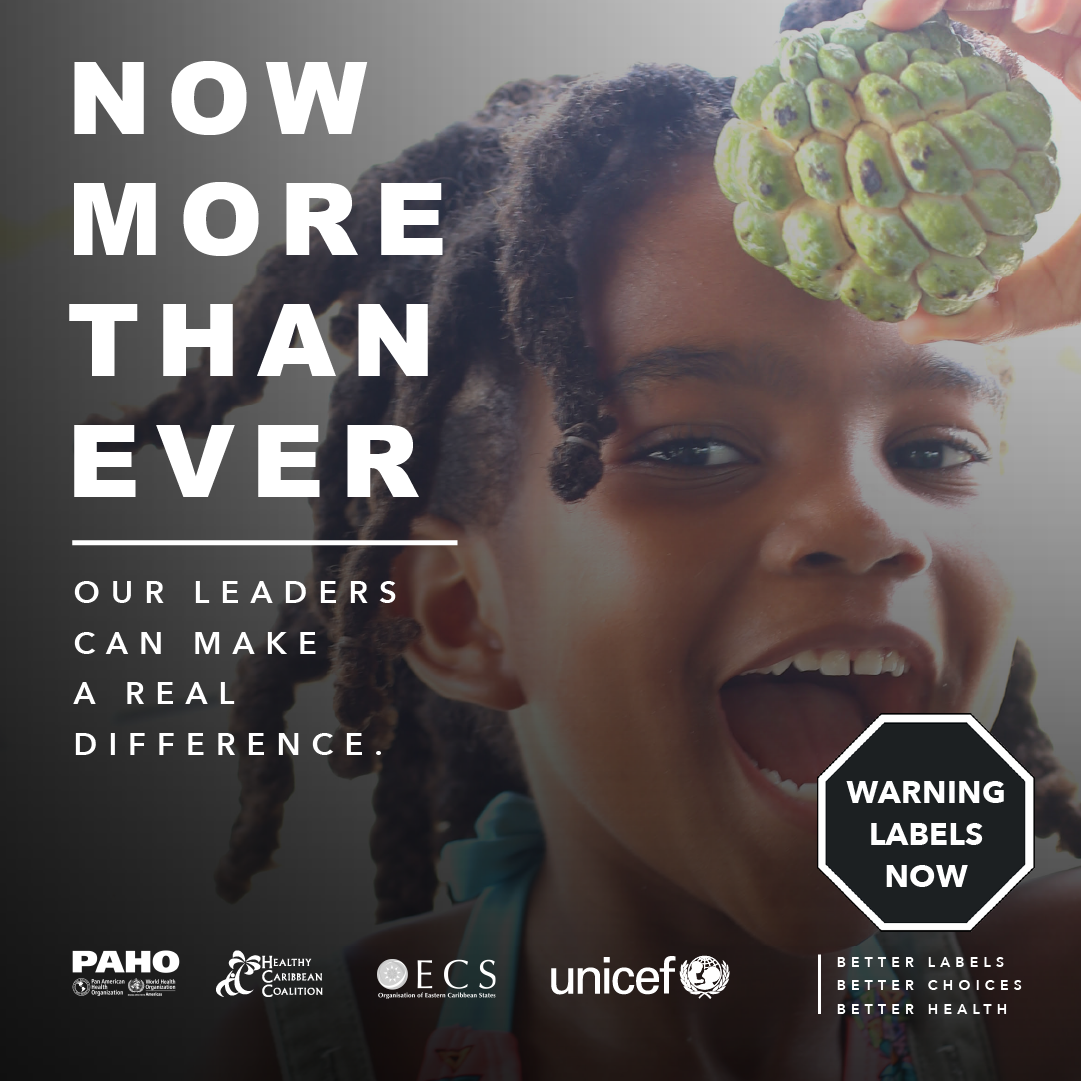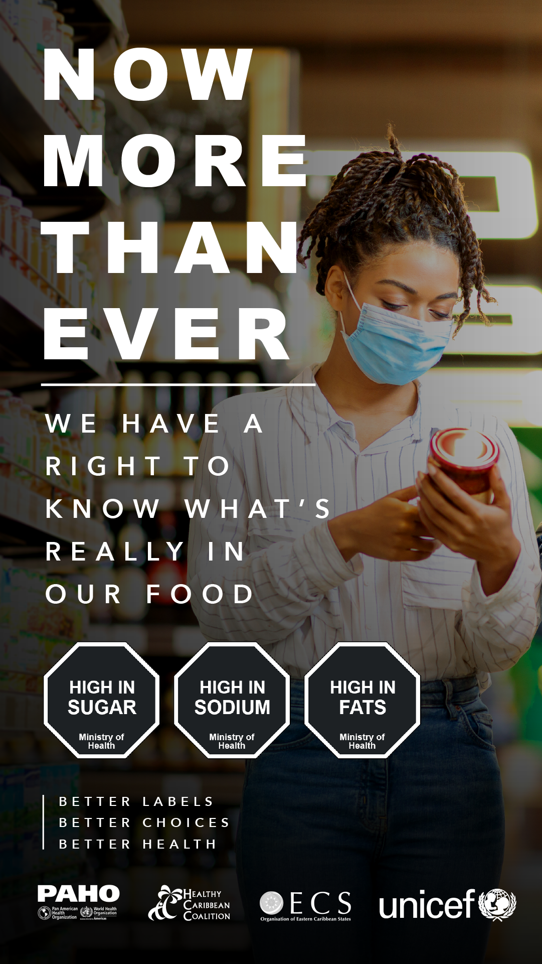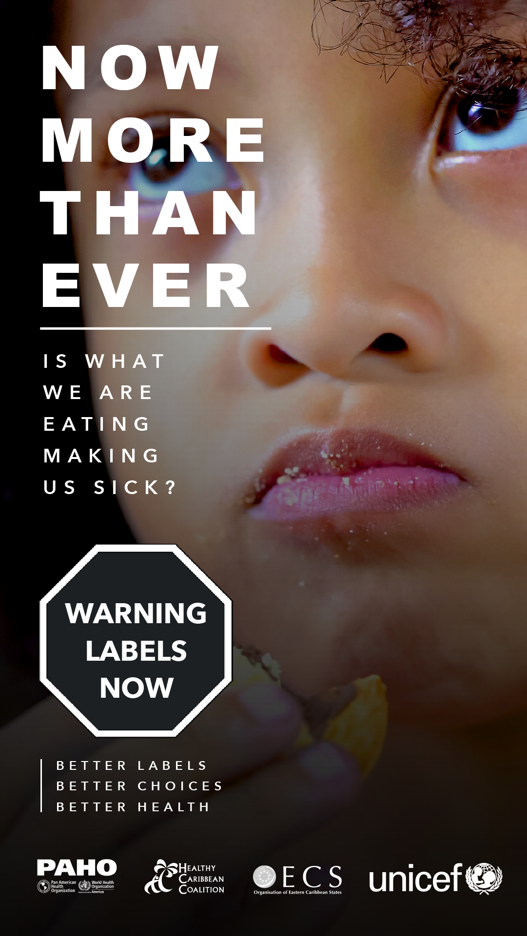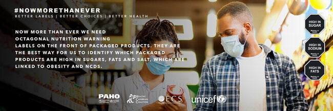 Visit the webpage on Front-of-package warning labeling in the Caribbean to learn more about this key policy tool to regulate obesogenic environments and beat obesity and NCDs.