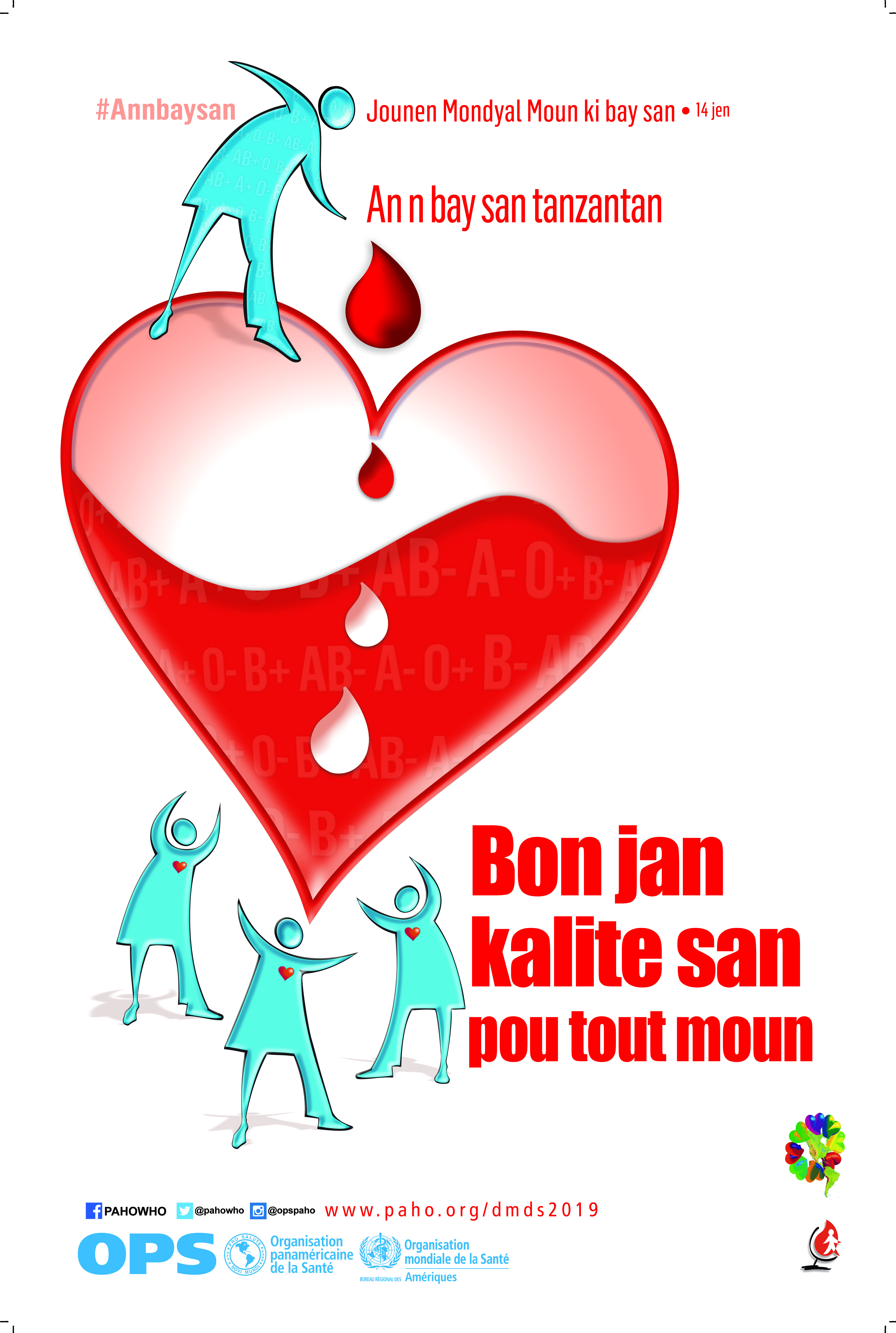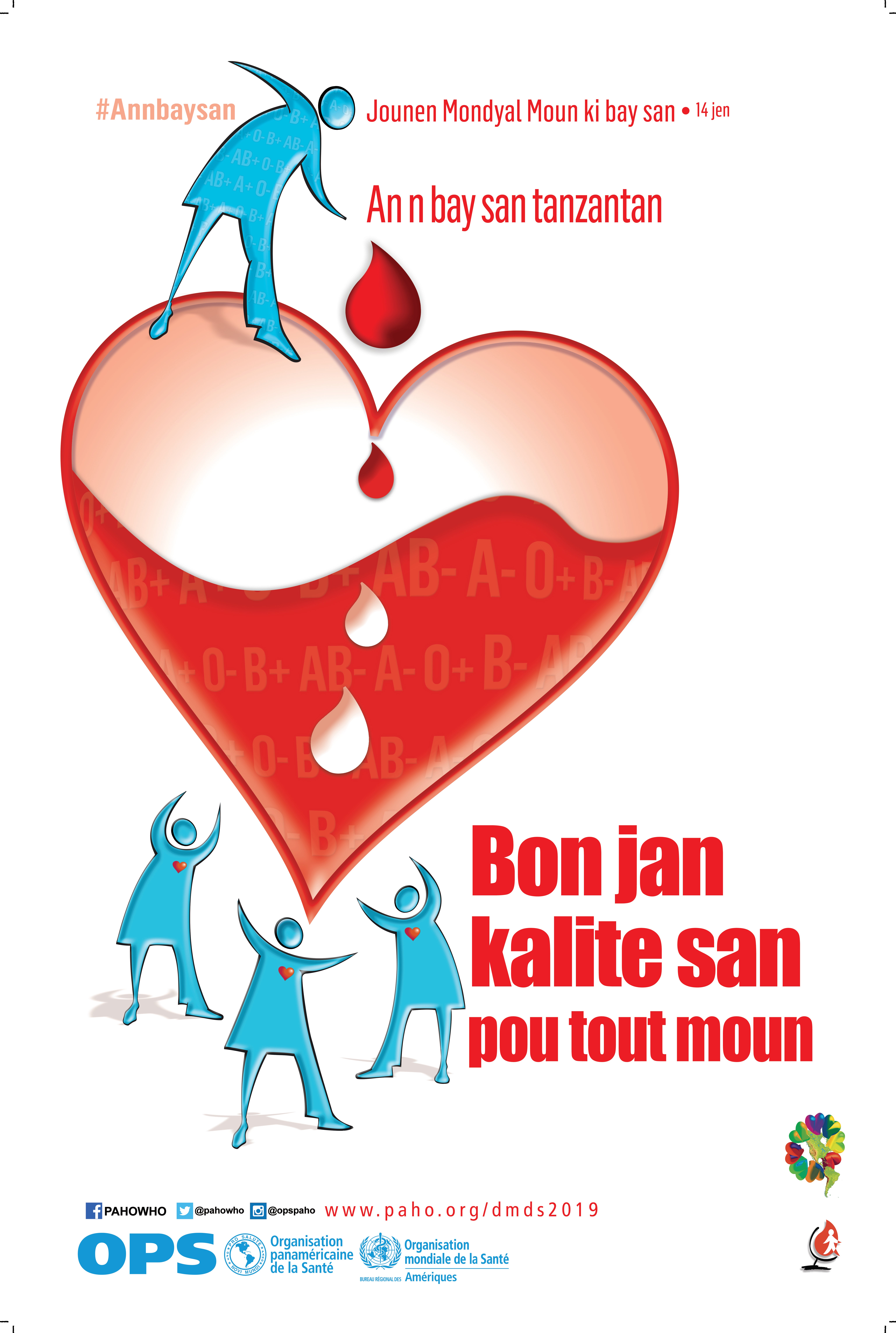 - Afich: Jounen Mondyal Moun ki bay san. Bon jan kalite san pou tout moun (Créole, PDF MB)