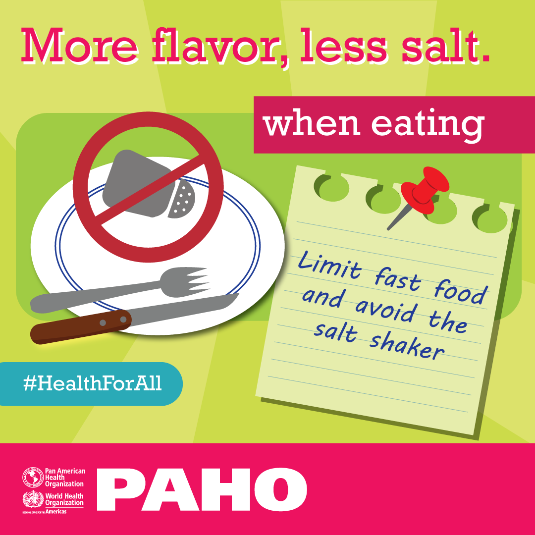 This year, the World Salt Awareness Week will take place from March 8 to 14 with the slogan: “More Flavor, Less Salt!”. The Pan American Health Organization/World Health Organization (PAHO/WHO) joins this global campaign to join forces with the international community and share the progress made by the Region. In turn, technical tools will be shared to facilitate the development and implementation of comprehensive salt reduction policies and dissemination of key messages to promote healthy practices at home, in school and at the workplace.