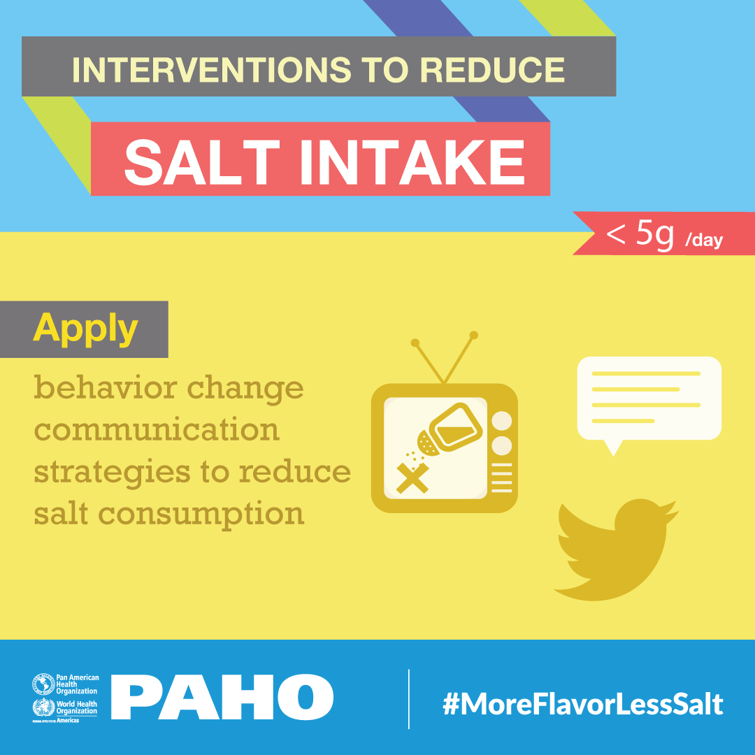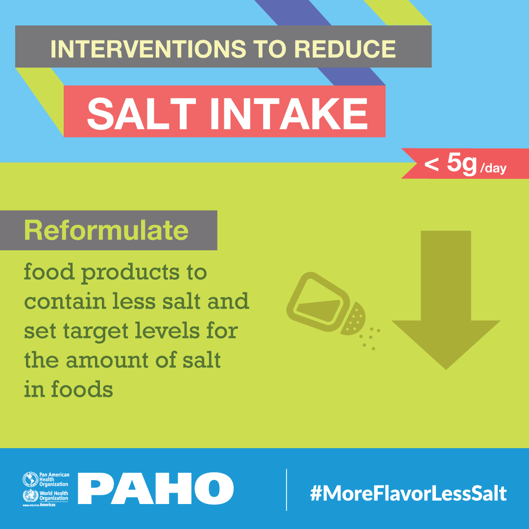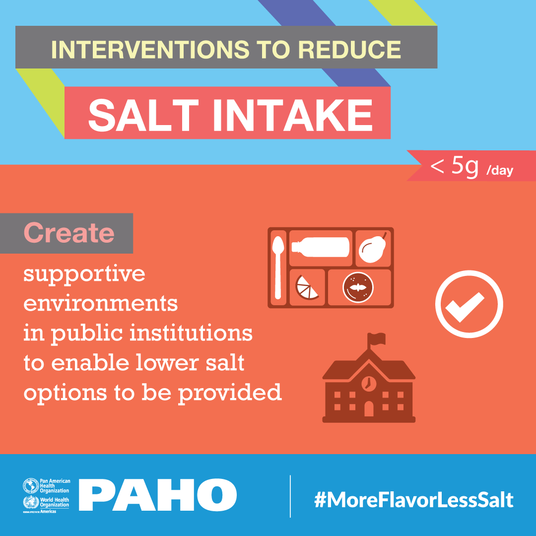 PAHO/WHO joins the global community effort sharing technical tools to develop and implement comprehensive policies for salt reduction and key messages to promote healthy practices at home, schools and workplaces.