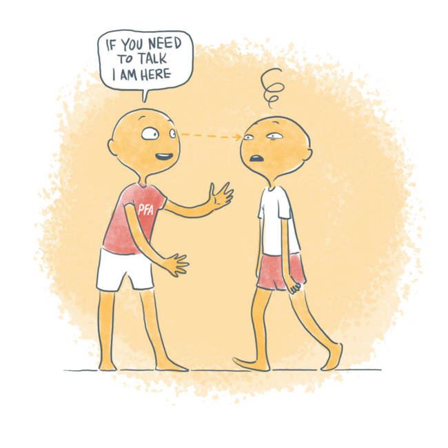 PFA is describes a humane, supportive response to a fellow human being who is suffering and who may need support. PFA is not something that only professionals can do; it can be provided for people in a position to help others who have experienced and extremely distressing event. PFA involves the following themes: