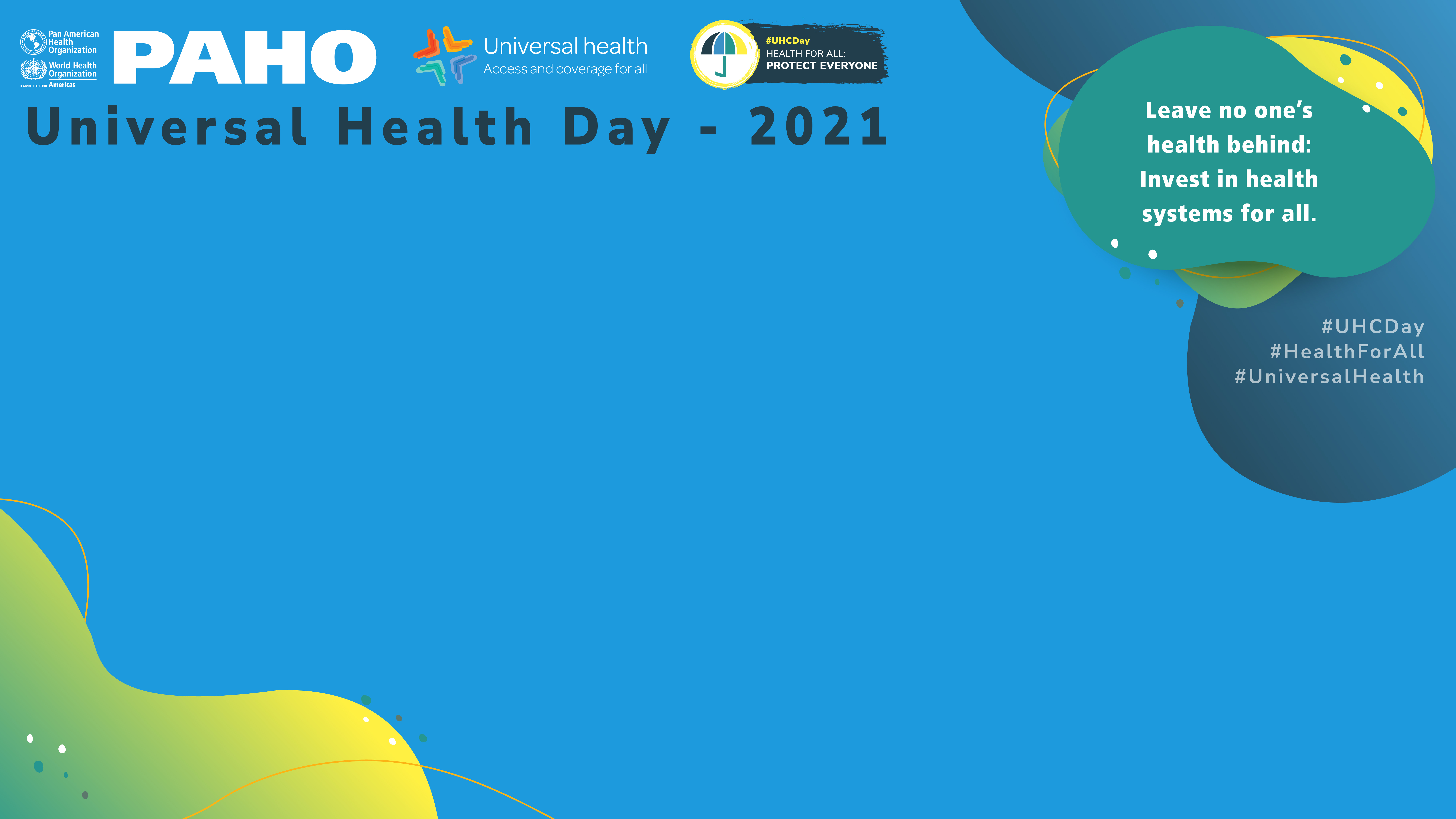 With this approach and under the motto “Leave No One´s Health Behind: Invest in Health Systems for All", we will celebrate Universal Health Day with a high-level virtual meeting to analyze how countries can sustain and increase public investment in health and social protection to build resilience in health systems.