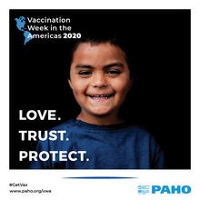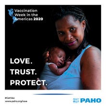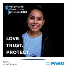 Between April 25 and May 2, 2020, the Pan American Health Organization (PAHO) and its partners will celebrate the 18th annual Vaccination Week in the Americas with the slogan “Love. Trust. Protect. #GetVax.” This year’s campaign wants to bring to mind the love people have for their children, themselves, and their communities; the trust in vaccines´ ability to save lives; and the protection they provide from diseases for everyone, everywhere.