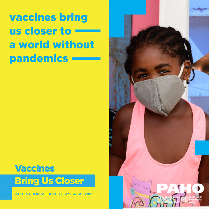 Between April 24 and 30, 2021, the Pan American Health Organization (PAHO) and its partners will celebrate the 19th annual Vaccination Week in the Americas under the theme "Vaccines bring us closer. #GetVax."