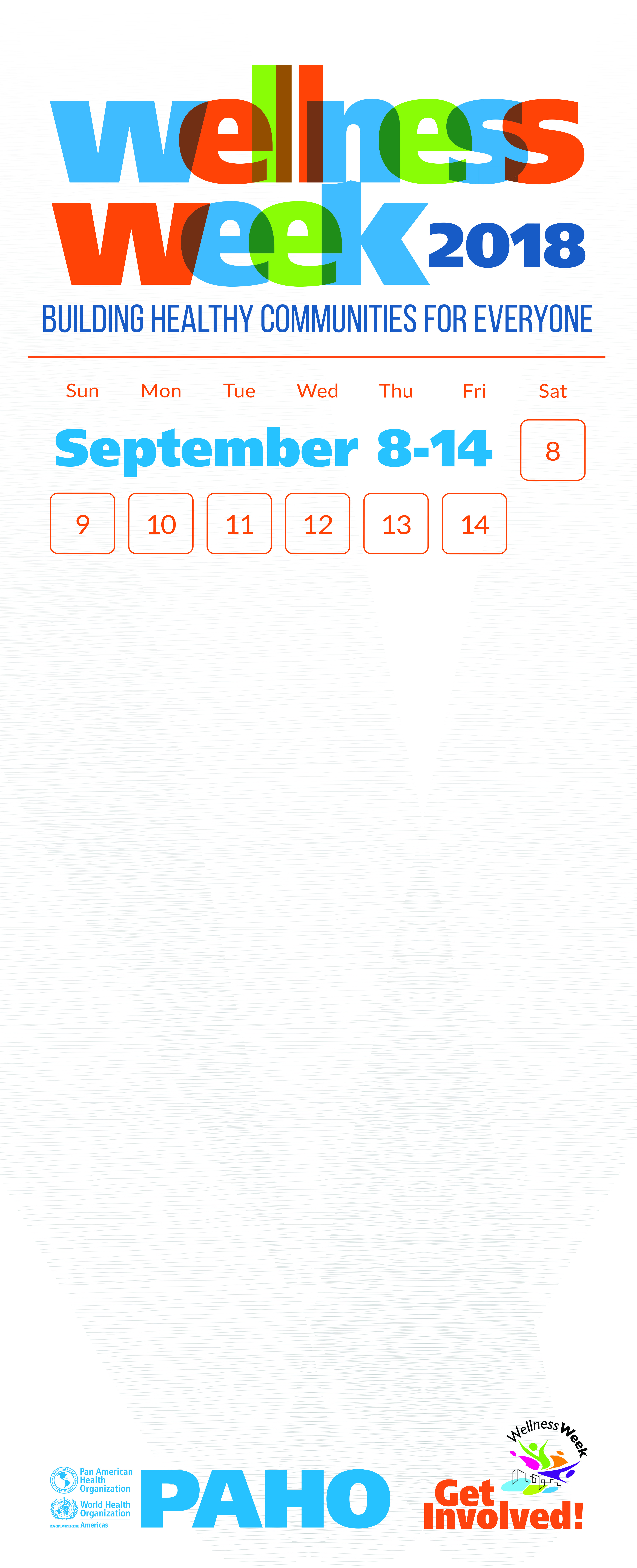 Inspired by the 2018 World Health Day theme, this year's Wellness Week theme is Healthy Communities for All. Under this theme, Wellness Week seeks to involve different actors who can have positive influence in their communities, such as health promoters, ministries of health, mayors, community leaders, and civil society in general. Through this involvement, Wellness Week seeks to highlight the importance of health promotion in everyone's decision-making in all settings, with the purpose of improving the lives of all.