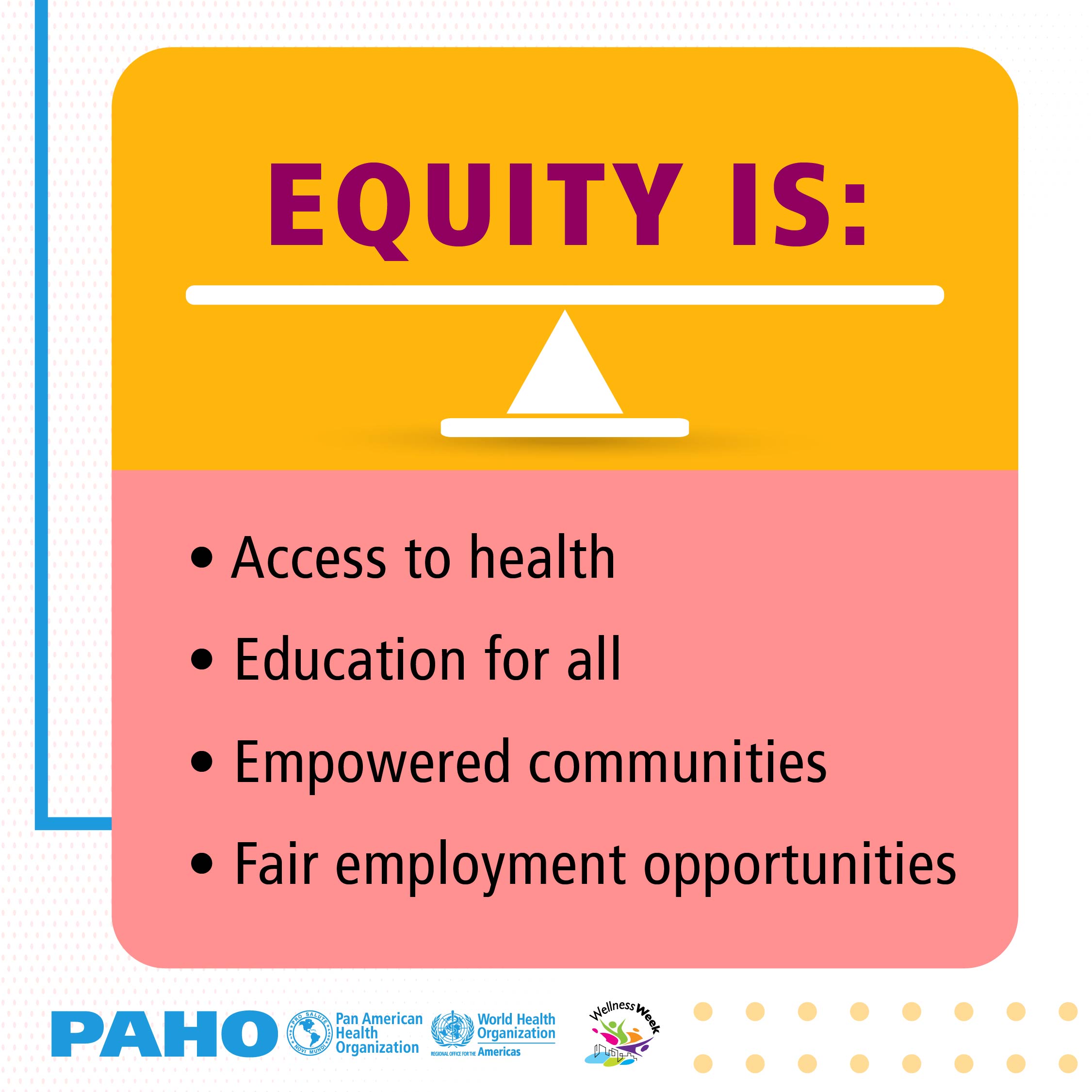 The slogan for the 2021 campaign is “Building equitable communities," following the call to action from World Health Day to eliminate health inequities, “Building a fairer, healthier world for everyone.”