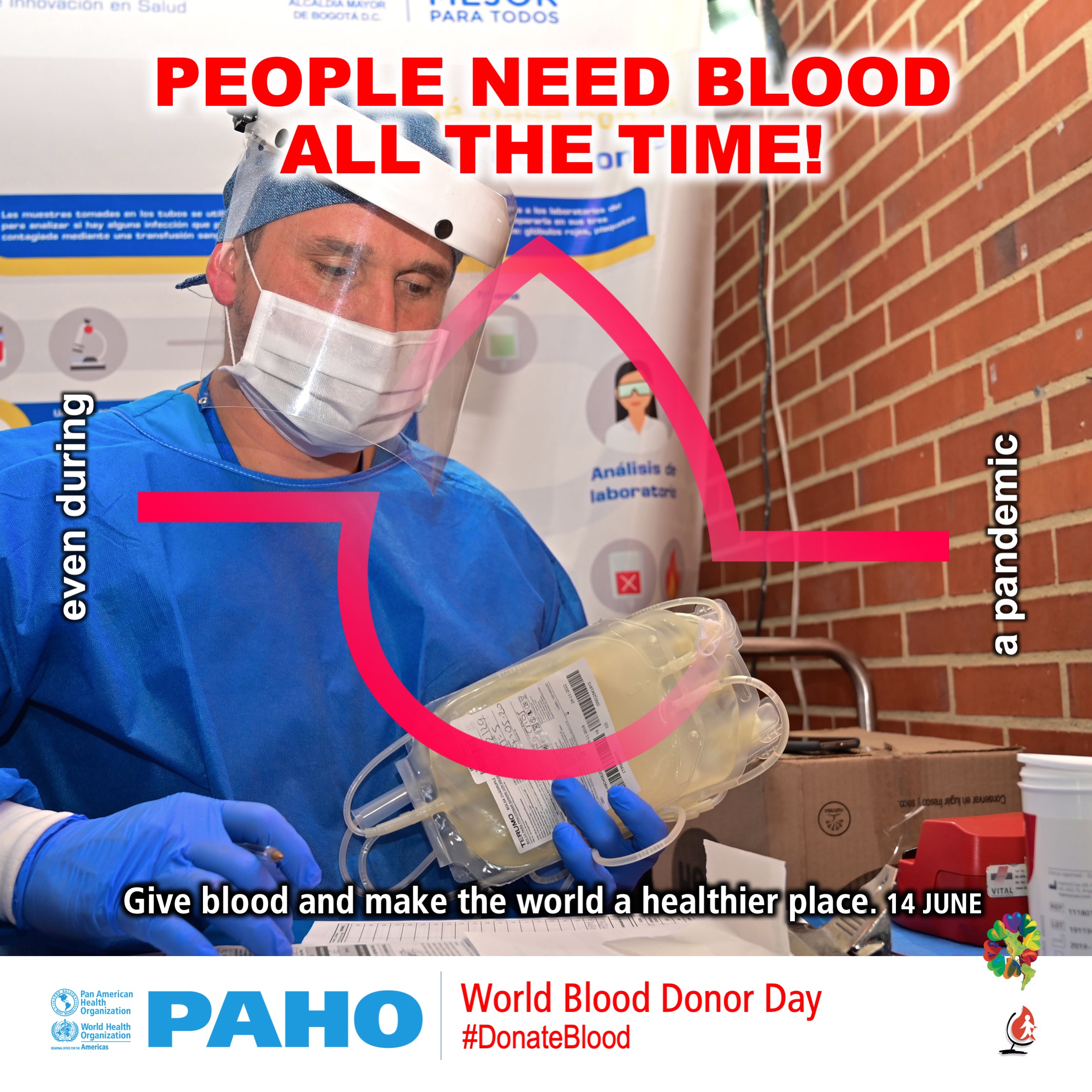 Due to the current COVID-19 pandemic, PAHO will run a virtual campaign this year. For more information on World Blood Donor Day activities in the Region of the Americas, visit the page "Paraguay will host the World Blood Donor Day Celebration" (Only in Spanish).