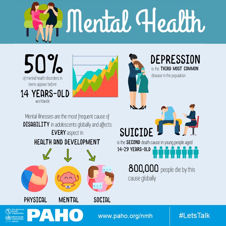 Half of all mental illness begins by the age of 14, but most cases go undetected and untreated. In terms of the burden of the disease among adolescents, depression is the third leading cause. Suicide is the second leading cause of death among 15-29-year-olds. Harmful use of alcohol and illicit drugs among adolescents is a major issue in many countries and can lead to risky behaviours such as unsafe sex or dangerous driving. Eating disorders are also of concern.