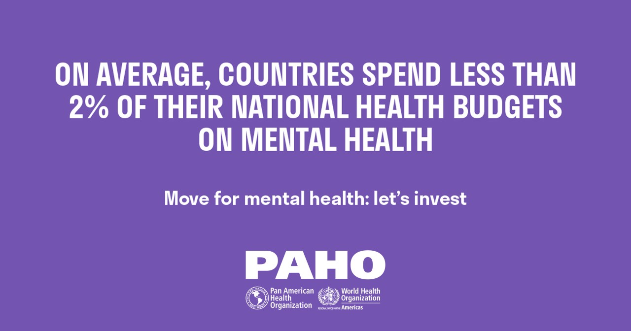 - On average, countries spend less than 2% of their national health budgets on mental health.