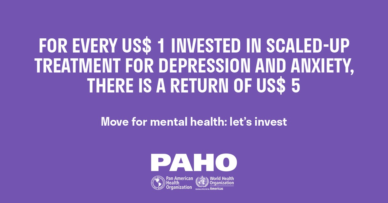 - For every US$ 1 invested in scaled-up treatment for depression and anxiety, there is a return of US$ 5.