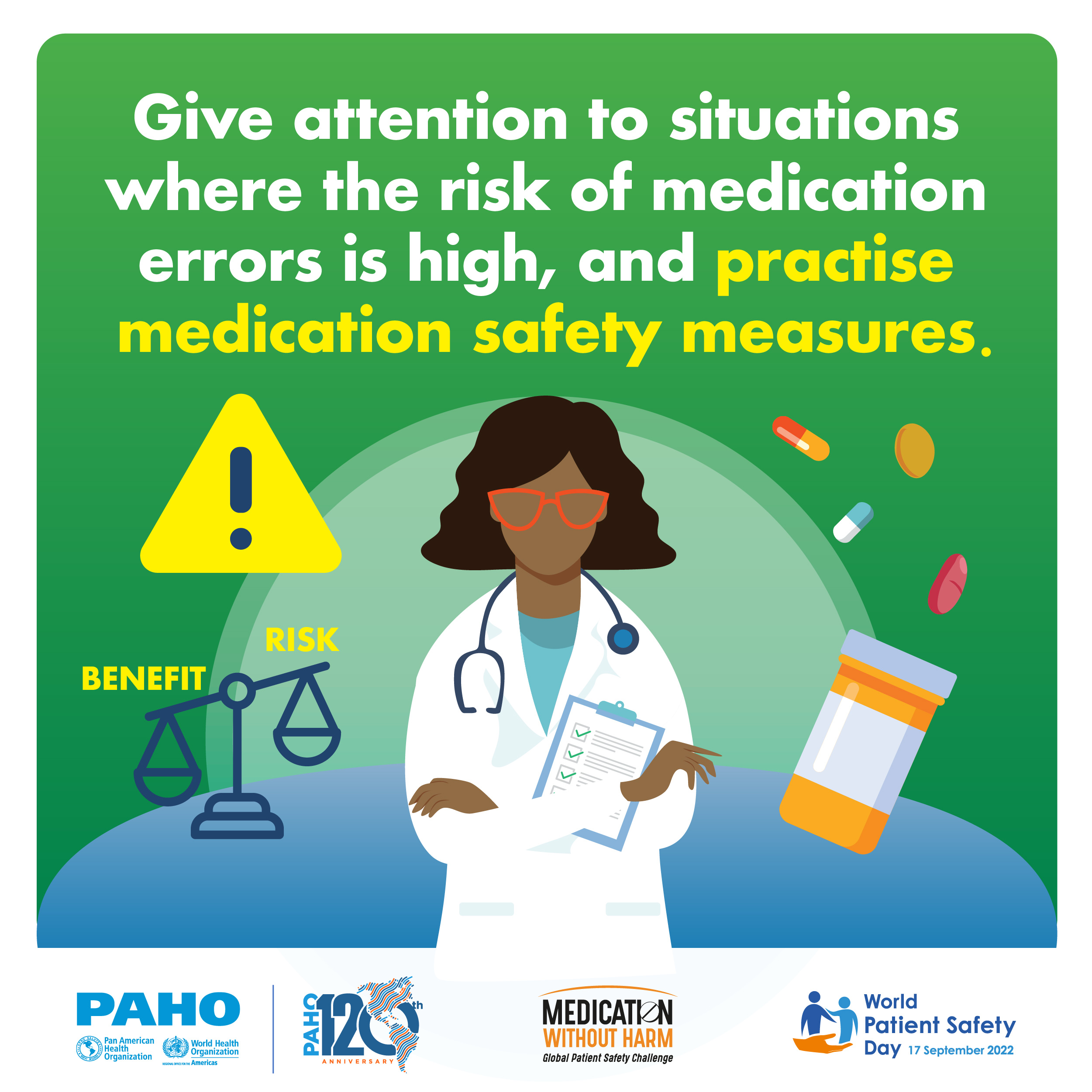 Medications are the most widely utilized interventions in health care, and medication-related harm constitutes the greatest proportion of the total preventable harm due to unsafe care, let alone the economic and psychological burden imposed by such harm. Acknowledging this substantial burden and recognizing the complexity of medication-related harm prevention and reduction, "Medication Safety" has been selected as the theme for World Patient Safety Day 2022. The campaign is envisaged to provide the needed impetus to consolidate the efforts of the existing WHO Global Patient Safety Challenge: Medication Without Harm, emphasizing the need to adopt a systems approach and promote safe medication practices to prevent medication errors and reduce medication-related harm. Special consideration will be given to areas where most harm occurs. The key action areas are high-risk situations, transitions of care, and polypharmacy.