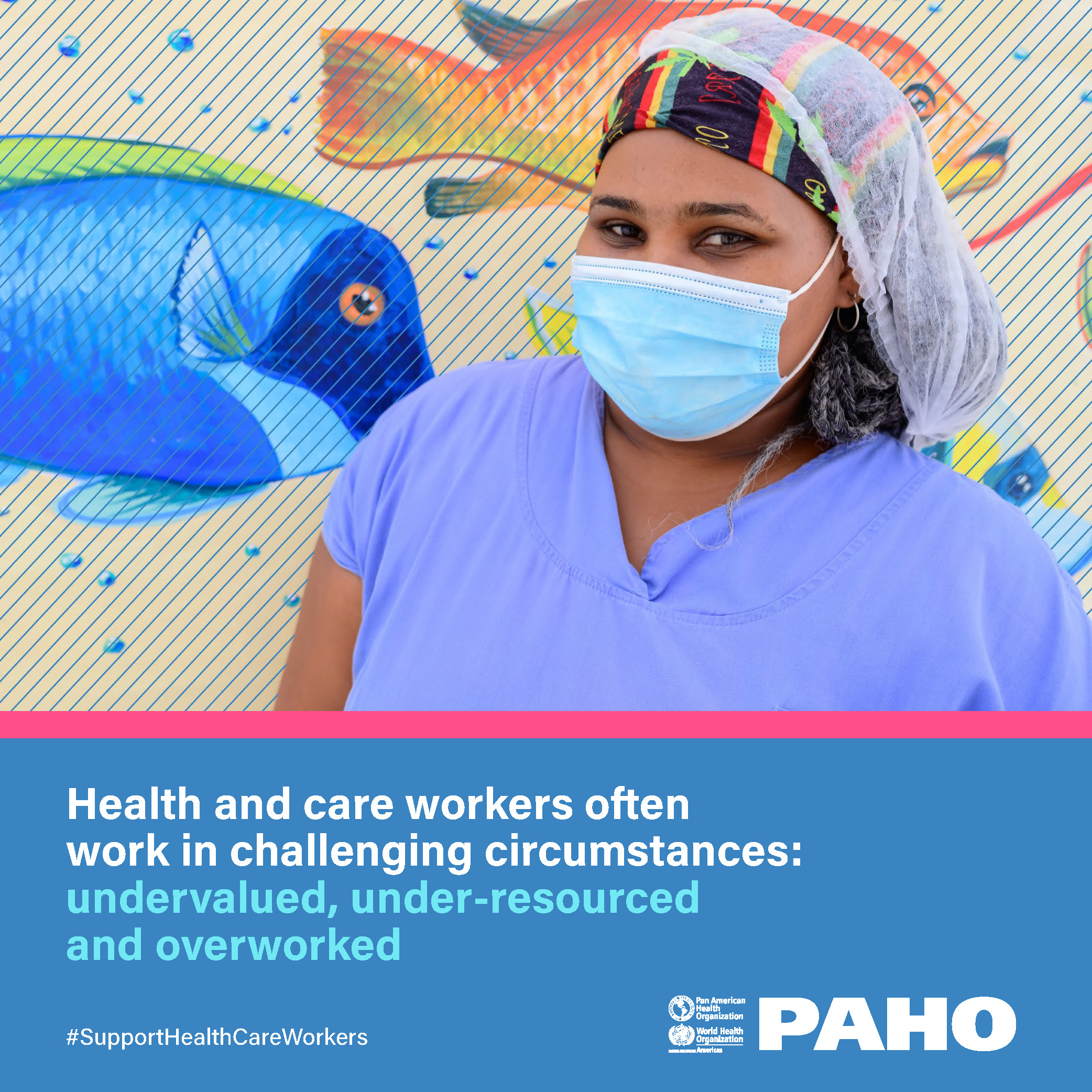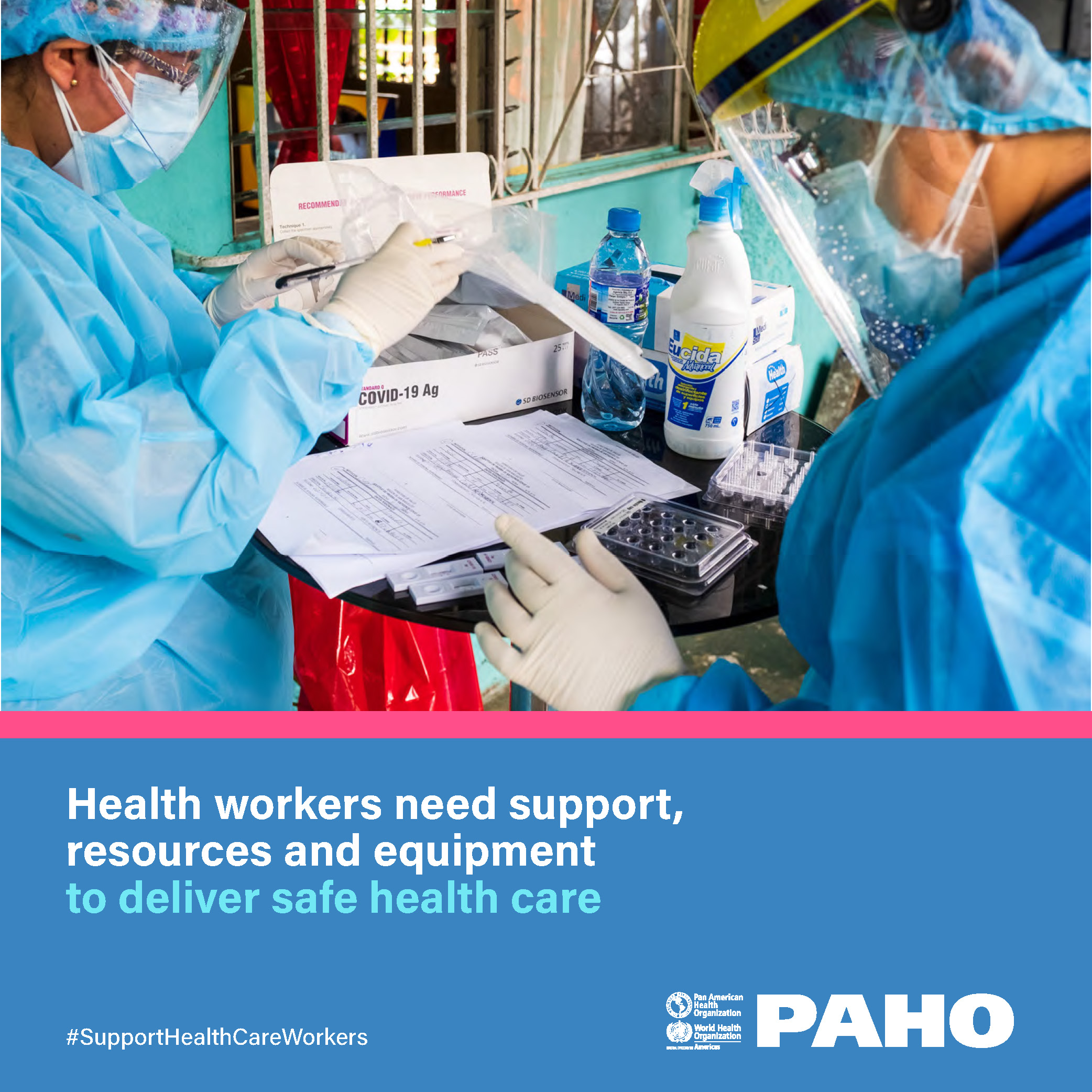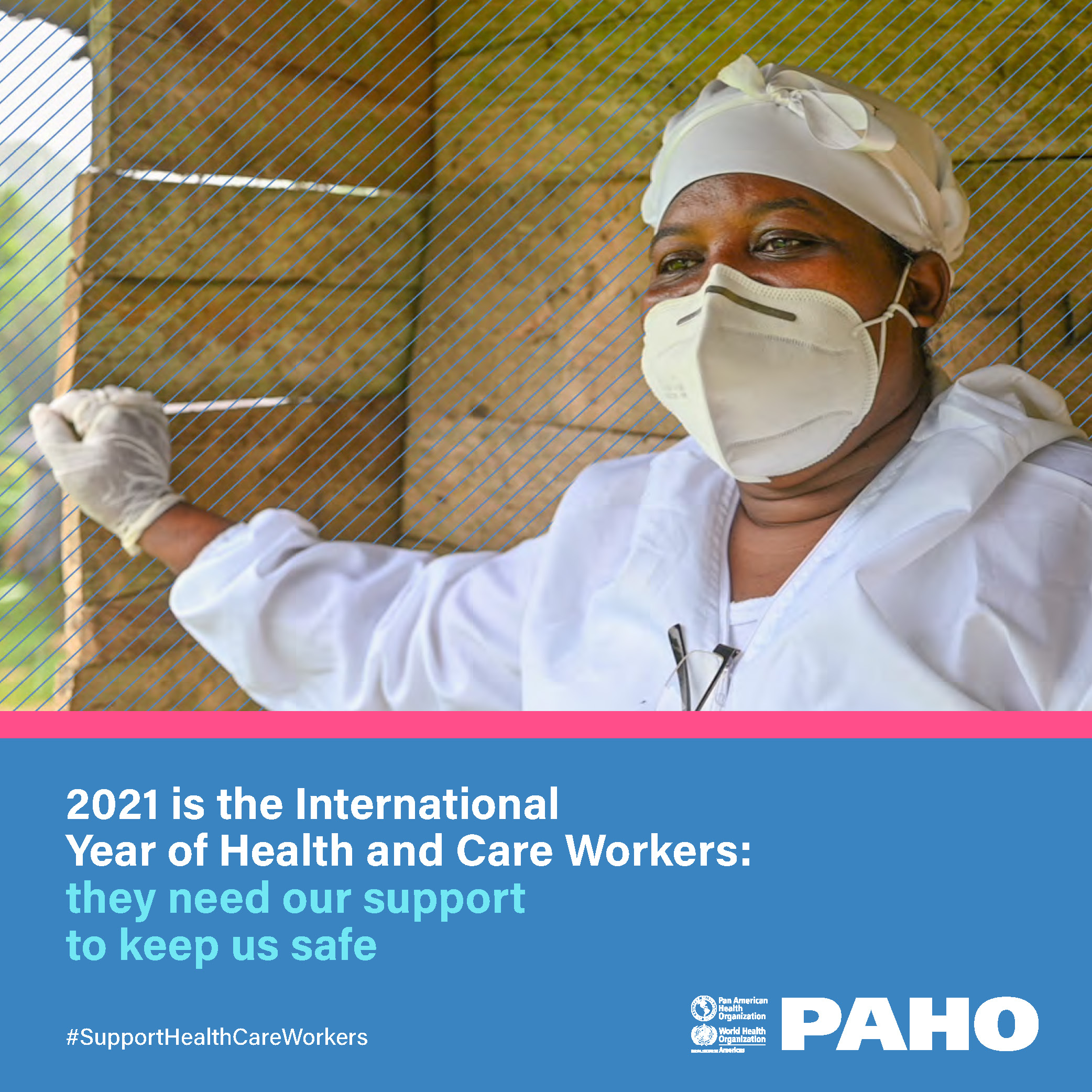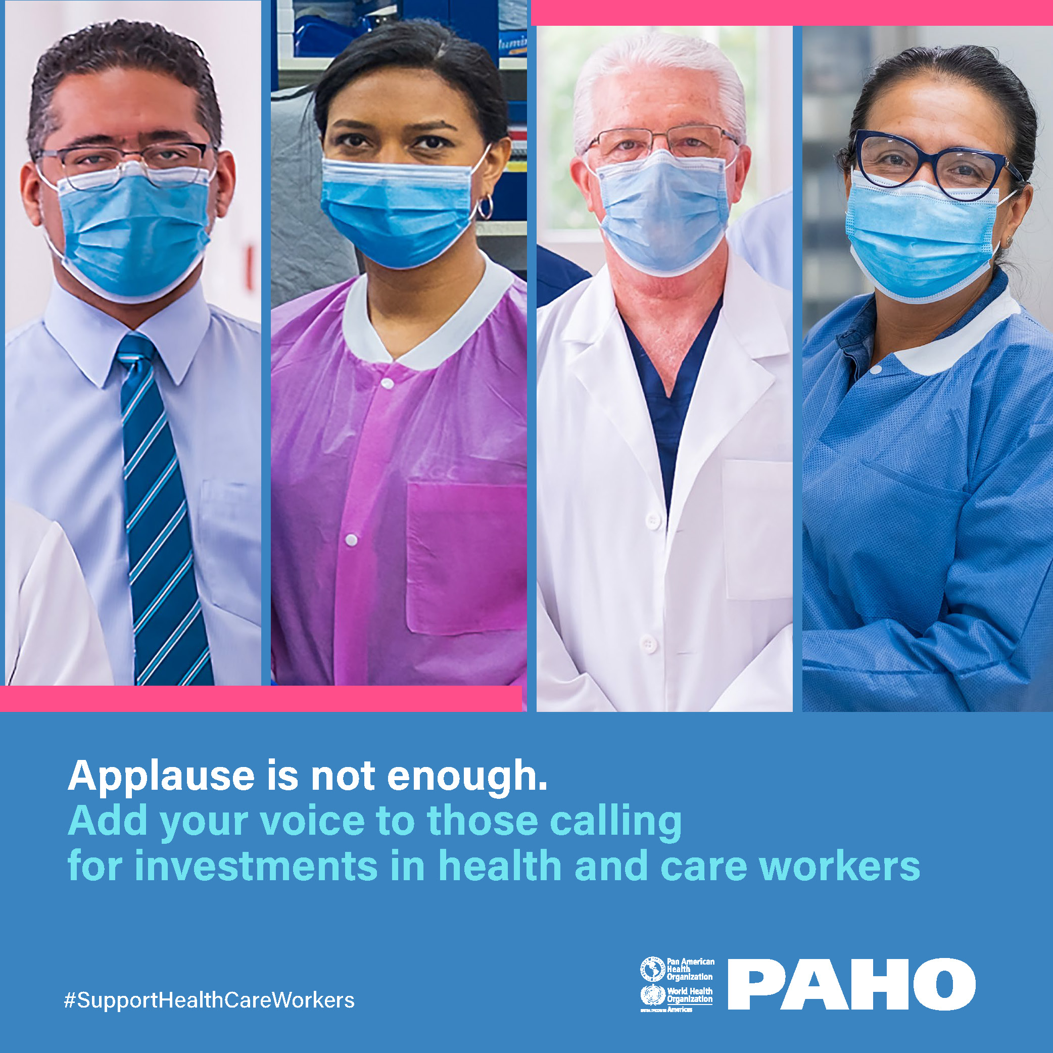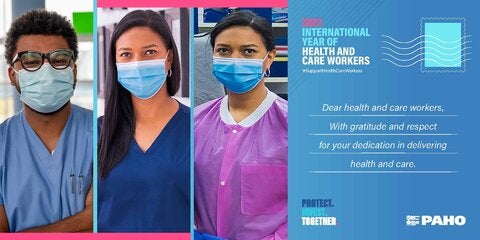 The Region of the Americas is participating in this campaign, under the theme "PROTECT. INVEST. TOGETHER", which highlights the urgent need to increase investment in and protection for health and care workers as a tangible way of recognizing their role. Access to universal health requires investment and protection at all times, not only during health emergencies, as this type of investment pays off generously in terms of health, employment, and economic and social opportunities. We must all, therefore, commit to ensuring safe and decent working conditions for our health and care workers, and to protecting their health, including their mental health.