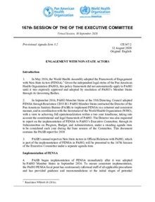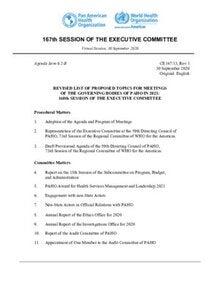 CE167/13, Rev. 1 - Proposed topics for meetings of the governing bodies of PAHO in 2021: (B) 168th Session of the Executive Committee. Incluye texto explicativo en el segundo enlace