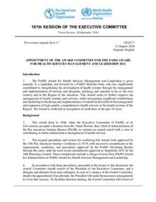 CE167/7 - Appointment of the Award Committee for the PAHO Award for Health Services Management and Leadership 2021