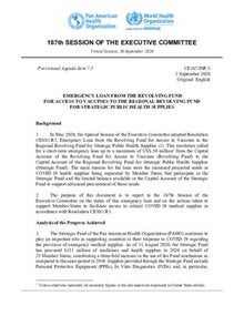 CE167/INF/3 - Emergency Loan from the Revolving Fund for Access to Vaccines to the Regional Revolving Fund for Strategic Public Health Supplies