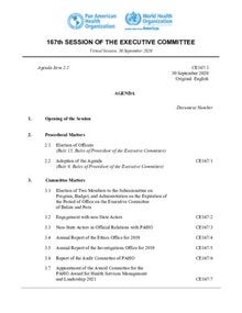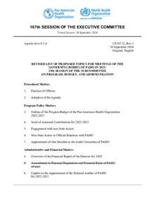 CE167/12, Rev. 1 - Proposed Topics for Meetings of the Governing Bodies of PAHO in 2021: (A) 15th Session of the Subcommittee on Program, Budget, and Administration