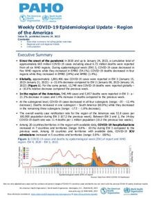Weekly distribution of new COVID-19 cases and associated deaths by subregions in the last 24 months in the Americas Region.