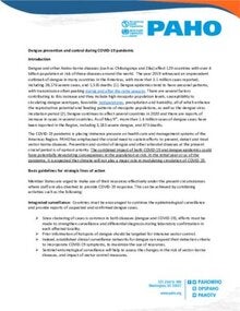 - PAHO/WHO provides advice and technical support for dengue prevention and control based on a regional strategy adopted by PAHO / WHO member States in 2016, called the "Strategy for arboviral disease prevention and control" (CD55.R6).