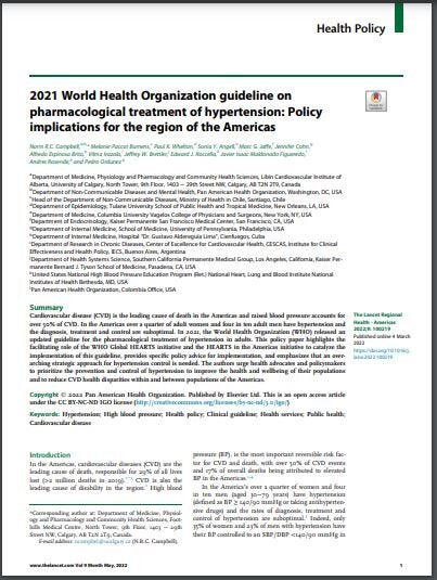 2021 World Health Organization guideline on pharmacological treatment of hypertension: Policy implications for the region of the Americas - The Lancet Regional Health – Americas