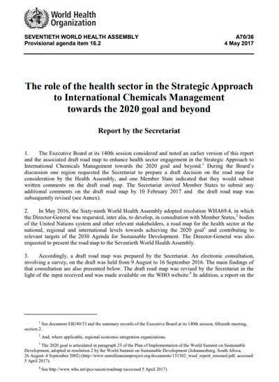 A70/36 The role of the health sector in the Strategic Approach to International Chemicals Management towards the 2020 goal and beyond