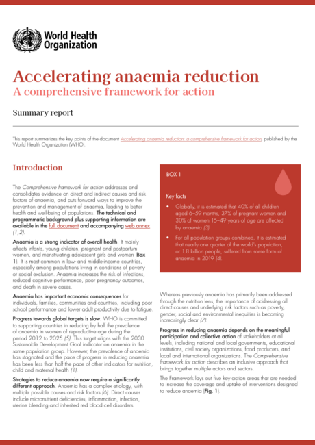 Accelerating anaemia reduction: a comprehensive framework for action: summary report