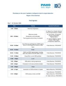 Agenda: Workshop on the use of epidemic intelligence tools for signal detection - October 2022