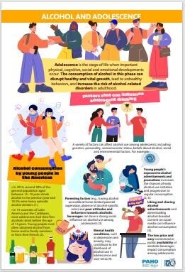 The consumption of alcohol during adolescence can disrupt healthy and vital growth, lead to unhealthy behaviors, and increase the risk of alcohol-related disorders in adulthood. This factsheet presents information about alcohol consumption among adolescents in the Region of the Americas and how adolescents are vulnerable to the effects caused by alcohol use. It also highlights few factors that can influence adolescent drinking and provide key recommendations to prevent alcohol use and its related harms.