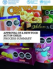 This document was formulated by the Pan American Health Organization/World Health Organization (PAHO/WHO) and the Food and Agriculture Organization (FAO). It was designed to share the Chilean experience while Law Nº 20,606 regarding the Nutritional Composition of Food and Food Advertising (hereinafter the Food Act) was being passed with members of parliament and other decision-makers from different countries throughout the Americas. This process encompasses the formulation of the Act, its entry into force, and monitoring of the Act, which may also apply to other public policies of this type, which is to say, that favor the general population’s health. |