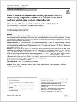 Front-of-package labelling (FOPL) schemes have been developed to provide more useful information to consumers and facilitate more critical and healthier food choices. This single-blinded multi-arm parallel-group randomised controlled trial aimed at assessing the effect of different FOPL schemes on the objective understanding of the nutritional content and intention to purchase products, in El Salvador.