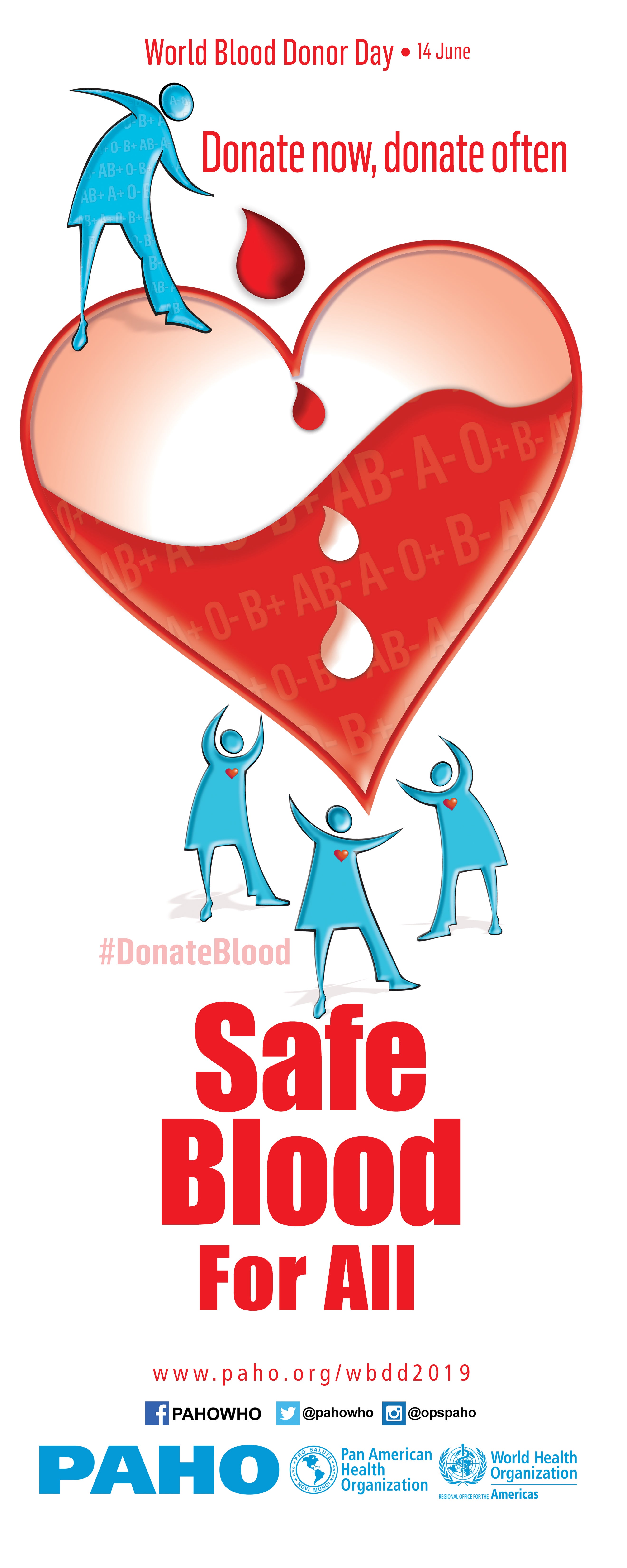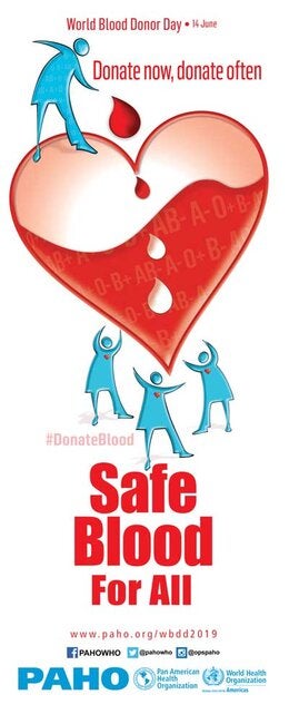 Banner vertical: Safe Blood for All. Donate now, donate often (JPG); 2019