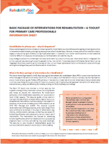 Global and demographic trends indicate an increasing need for rehabilitation as a result of population ageing, increasing prevalence in noncommunicable diseases and ongoing consequences of conflict and injury. However, in many parts of the world this need is largely unmet and may grow if there is no significant action taken. In some low- and middle-income countries it is estimated that more than 50% of individuals do not have access to the rehabilitation services they require. A key strategy to address this unmet need is to make rehabilitation available in primary care. When rehabilitation is integrated into primary care, services are brought closer to people’s homes, making them more accessible and affordable. Rehabilitation can be integrated into primary care through multiple mechanisms, such as increasing the rehabilitation workforce at this level and through utilizing the existing primary care workforce to deliver rehabilitation. MORE INFORMATION |