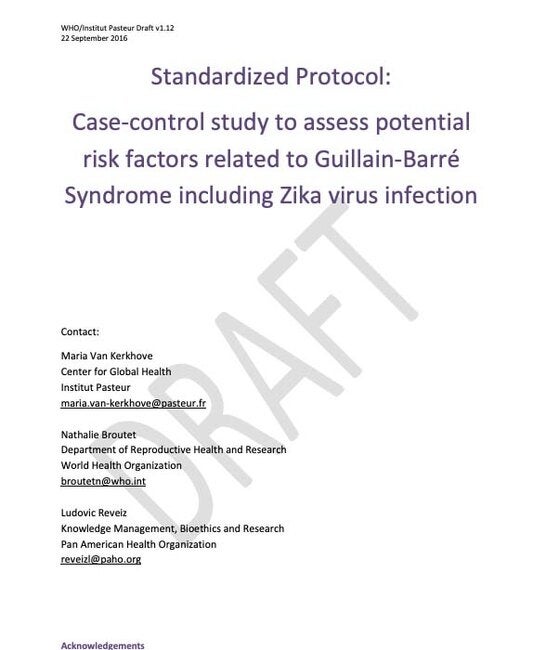 Case-control study to assess potential risk factors related to Guillain-Barré Syndrome including Zika virus infection; 2016