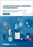 This document is a summary of the publication Catalyzing Ethical Research in Emergencies. Ethics Guidance, Lessons Learned from the COVID-19 Pandemic, and Pending Agenda of the Pan American Health Organization, which provides direction for strategies and guidelines on modifying ethical oversight processes in emergency situations, ethically monitoring ongoing research in the face of new evidence, and overcoming other ethical challenges that arise when doing research in public health emergencies. It also provides guidance so that the emergency use of unproven interventions outside of a research setting is carried out in an ethical manner. Finally, it includes the lessons learned in the Region of the Americas during the COVID-19 pandemic and recommendations resulting from a regional reflection exercise aimed at improving ethical preparation for conducting research during future health emergencies.