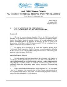 CD58/INF/14 - Progress Reports on Technical Matters: G. Plan of Action for the Strengthening of Vital Statistics 2017-2022: Midterm Review