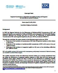 In 2009 the Regional Initiative for the Elimination of Mother-to-Child Transmission of HIV and Congenital Syphilis was launched by PAHO and UNICEF, and in September 2010 the PAHO Member Countries approved the Strategy and Plan of Action for the Elimination of Mother-to-Child Transmission of HIV and Congenital Syphilis by the year 2015 by resolution CD50.R12