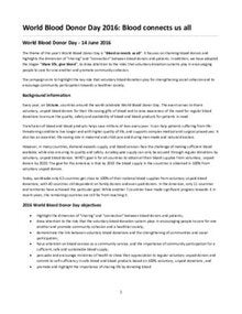 Concept Note - World Blood Donor Day 2016: Blood Connects Us All