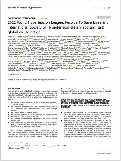 This fact sheet and global call to action is aimed at nutrition, hypertension, cardiovascular and other health care clinicians and scientists, and health advocates, as well as the organizations to which they belong. The ‘call’ is to align these audiences with the facts on: