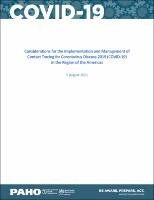 This publication from the Pan American Health Organization (PAHO) is an updated version of the June 2020 publication Considerations for the Implementation and Management of Contact Tracing for Coronavirus Disease 2019 (COVID-19) intended to complement the interim guidance by the World Health Organization (WHO) on contact tracing in the context of COVID-19. The present publication includes guidance for contact tracing among vaccinated contacts and international travelers, and in settings with community transmission. It also includes the updated definitions for cases, contacts, and community transmission published by WHO. It aims at providing guidance and operational recommendations for implementing contact tracing for COVID-19 in the Americas. It will be updated as current knowledge on COVID-19 evolves. The target audiences of this publication are national health authorities, public health professionals, and other officials involved in developing and implementing policies and standard operating procedures on contact tracing operations in the Americas.