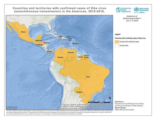 Countries and territories with autochthonous transmission. Epidemiological Week 1 - 2016