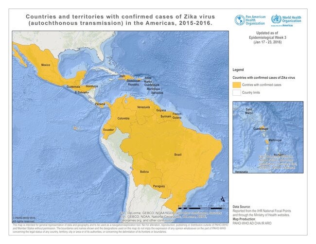 Countries and territories with autochthonous transmission. Epidemiological Week 3 - 2016