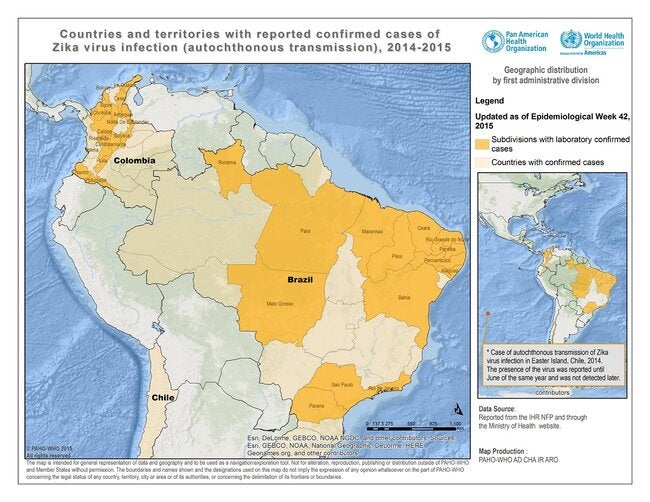 Countries and territories with autochthonous transmission. Epidemiological Week 42 - 2015