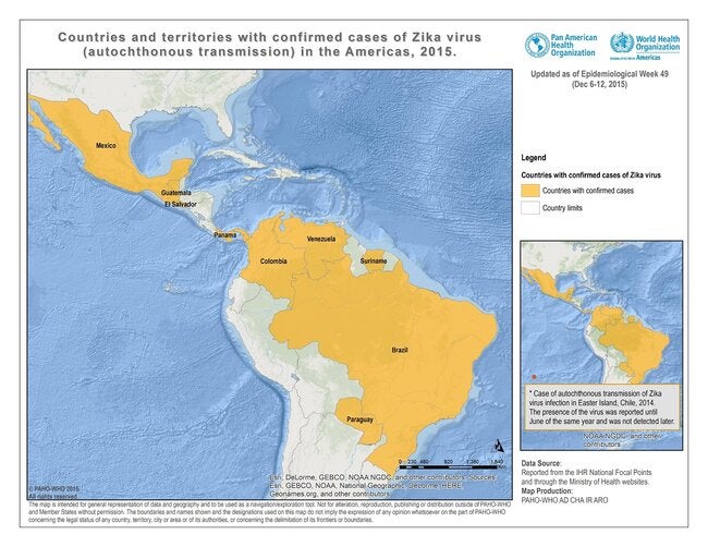 Countries and territories with autochthonous transmission. Epidemiological Week 49 - 2015