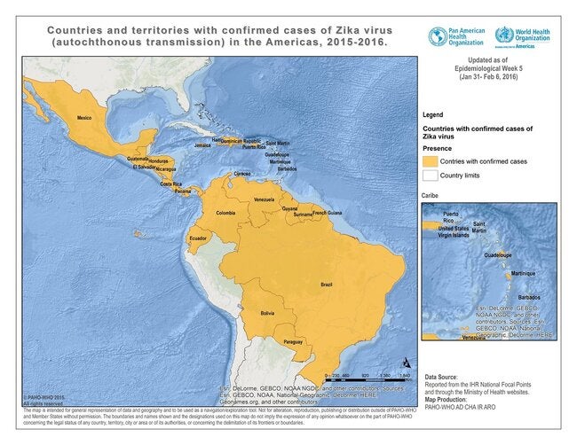 Countries and territories with autochthonous transmission. Epidemiological Week 5 - 2016