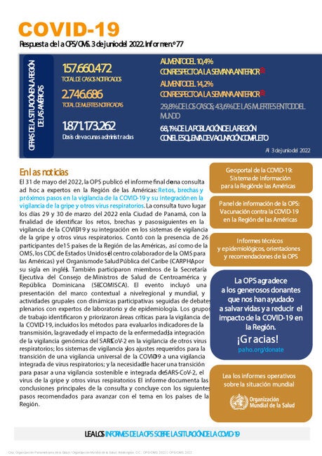 COVID-19 - PAHO/WHO Response, Report 77 (June 3, 2022)