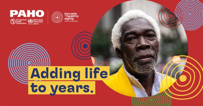 Part of the visual identity created for the Decade of Healthy Aging in the Americas (2021-2030). Social media card 4.