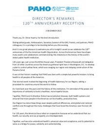 Remarks of Dr. Carissa F. Etienne at the 120th Anniversary Reception of PAHO
